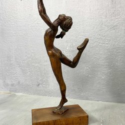 Skulptur bronserad metall, kvinnofigur med kratta,50/60-tal