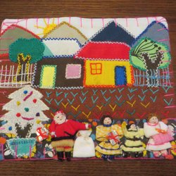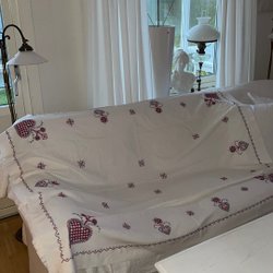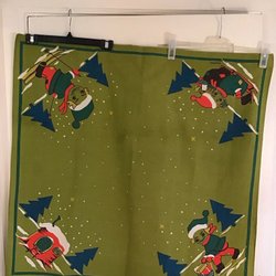 merveilleuse vieille nappe de Noël vintage chemin de table coton imprimé années 50 julvisor & ramsor