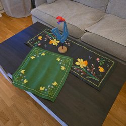 Chemin de table pour Pâques couleur jaune/beige. 1 pièce 40x130cm 2 pièces 35x90cm neuf non utilisé.