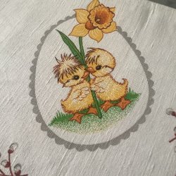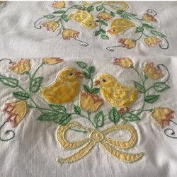3 jolies nappes pour Pâques** Imprimé sur coton * un chemin de table et deux plus petits en bon état