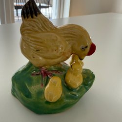 Poulette à œuf Terrine Pot à friandises Poule de Pâques en forme de canard signée par Michel Caugant