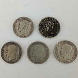 Under regeringstiden av Gustaf V mellan 1907 och 1950 präglades många unika svenska mynt, som nu går att hitta på Tradera. Att köpa dessa mynt hos oss ger samlare chansen att spara pengar, göra unika fynd och samtidigt värna om miljön. Buda hem svenska mynt på auktion eller köp direkt till fast pris!