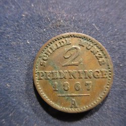 TYSKLAND 2 PFENNIG 1867 A