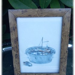 Tableau de Lasse Åberg avec Mickey Mouse dans son bateau dans un seau à cadre en bois veiné Bon état