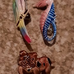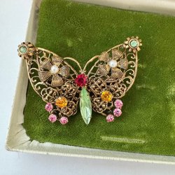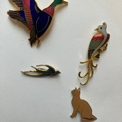 Broscher förknippas ofta med ädelstenar, guld och silver. Trenderna genom årtiondena har dock även lämnat plats för retrobroscher och färgglada plastvarianter. Broscher finns i ett närmast oändligt antal olika varianter, både trendiga och klassiska. I Traderas utbud av begagnade broscher kan man hitta broscher silver och broscher guld. I allra bästa fall finns en Chanel brosch eller två ute för auktion – en dröm för den som gillar att klä sig klassiskt stilrent. Den som vågar ta ut svängarna har ofta ännu mer att hämta. Broscher, smycken och kläder är ett intresse som delas av många. Individuella preferenser styr garderobens innehåll och dessa förändras över tid. Titta igenom utbudet av aktiva annonser så kan du upptäcka broscher som gjort sitt i en persons smyckesgarderob, men som blir huvudnumret i din. Hos Tradera har du möjlighet att hitta begagnade broscher i alla prisklasser, från slutsålda varianter från budgetkedjorna till diamantprydda varianter från välkända juvelerare.