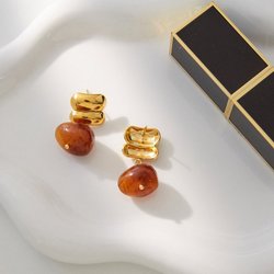 NEUF dans un emballage scellé. - Boucles d'oreilles plaquées or - PVD - Collier en or - Pierre rouge