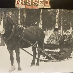 Äkta fotografivykort Par med pälsar i släde efter häst i Bollnäs