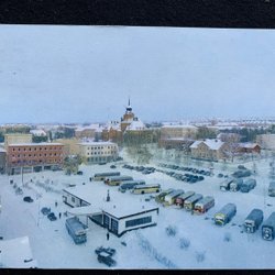 Östersund Vintermotiv på Gustaf III torg med bussar bilar 1962