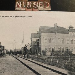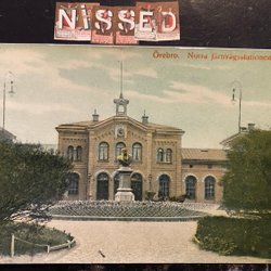 Örebro Norra Järnvägstationen med lila Bazarstämpel