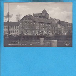 LANDSKRONA. Hamnparti med segelfartyg och färjan(?) Ven ca 1930-tal