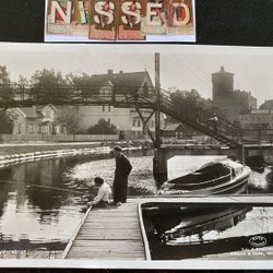 Arvika Tivoliviken Petits bateaux le long de tout le quai Des gens sur les bancs PB 13373 A6 ondulé*
