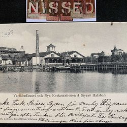 Vykort Hamnpiren. Halmstad, 1900 - morsekod