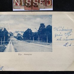 Hjo tidigt blåtonat vykort Hamngatan