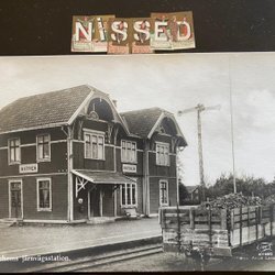 Järnvägstationen Lilleskog Handkolorerat