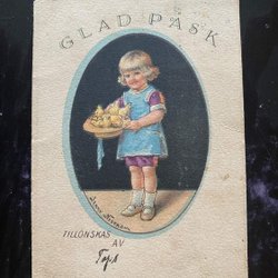 Litet äldre påskkort - signerat Jenny Nyström - Glad Påsk