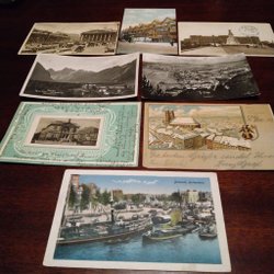 Huit cartes postales étrangères anciennes. Trois Londres, deux Norvège, deux Germany et un Rotterdam
