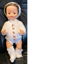 Vêtements de poupée tricotés à la main, 5 pièces, uniques, blancs et roses (poupée non incluse) (13)