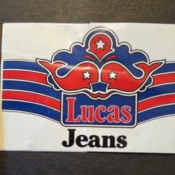 Autocollant blanc, rouge et bleu Lucas Jeans