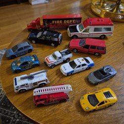 Begagnade Corgi bilar i olika skick