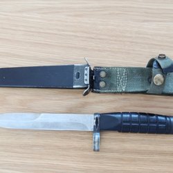 En bajonett är del krigshistoria, men de första bajonetterna användes faktiskt vid jakt på 1500-talet. Då blev musketörerna så pass lätta att bära på att man kunde använda dem i jakten av stora djur. För även om geväret var lätt, sköt det endast en kula i taget och det tog tid att ladda om. Därför trädde man i en kniv i pipan för att skydda sig mot angrepp från det skadade djuret under tiden man laddade. Senare monterades bajonetterna runt pipan istället för att man skulle kunna skjuta med den på. De användes även till närkamp under krig när fienden kom för nära för att man skulle hinna ladda om. Soldater tränades i att använda bajonett. Andra världskriget förde med sig en helt annan typ av krigföring än tidigare och även om bajonetten användes även under detta krig var det inte i samma utsträckning som under tidigare århundraden.