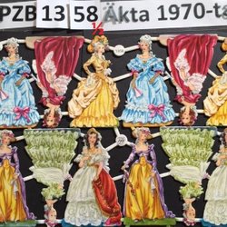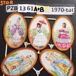 PZB 1361 a&b:8Stora ovala krinolindamer.GAMMAL STOR karta bokmärken.1970t.32x25c