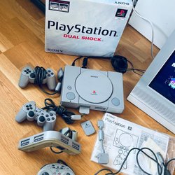 Konsol, Playstation 1 kontroll, instruktionsbok, scart-kontakt – tillbehör till Playstation 1 går också att hitta begagnat. För att kunna spara spelandet i ett Playstation 1 spel krävdes det till exempel att man satte in ett separat minneskort i konsolen. Den typen av tillbehör går att hitta begagnat online, både nytillverkade varianter och i original. Välj själv om du vill köpa produkter till fast pris eller på auktion – fynd kan du hitta på flera olika sätt.