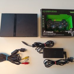 KONSOL SLIM SVART, KABLAR, HANDKONTROLL SLIMLINE till Sony Playstation 2 PS2