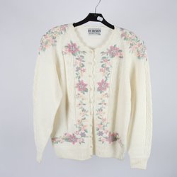 Très joli chemisier en dentelle blanche avec col montant boutons en perles motif floral M L 40 42 NY
