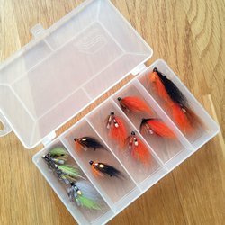 - Flugor i olika storlekar och färger för att attrahera olika typer av lax