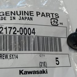 Kawasaki OEM SCREW,6X14 92172-0004