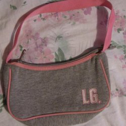 Grå Rosa Liten Handväska Tyg Dragkedja LG. logga Praktisk Väska Mjuk Fin Unik
