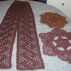 Vintage Brun Virkad Remsa/ Fönsterremsa + 2 Bruna Stjärnvirkade Dukar 60/70-tal