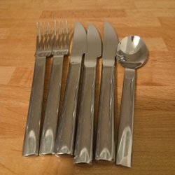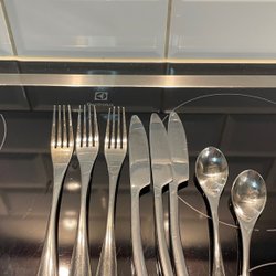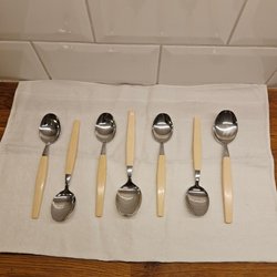 Les couverts originaux de grand-mère, fourchette et cuillère à café, marqués IKEA, acier inoxydable.