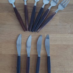Les couverts originaux de grand-mère, fourchette et cuillère à café, marqués IKEA, acier inoxydable.