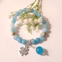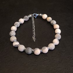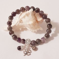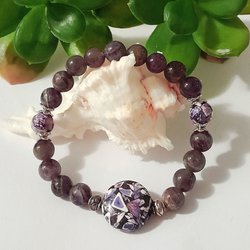 Bracelet AMÉTHYSTE Pierre Naturelle Magnesite Pressée Coin & Perles Élastique dans Pochette à Bijoux