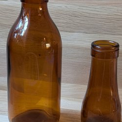 • Antika medicinflaskor i bruntonat glas