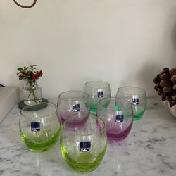 5 tasses hautes et fines de couleurs différentes / Rétro / vintage / verres à boire en plastique dur