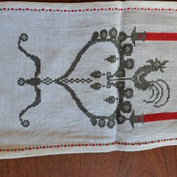 Paire de coureurs en coton vintage tissés à la main 142×57cm Motifs géométriques de cœur blanc cassé