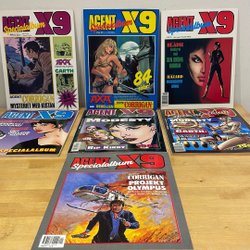 Dyk ner i en värld av hemliga uppdrag, farliga skurkar och oförglömliga äventyr med Agent X9 serietidningar. Sedan dess debut har Agent X9 varit i framkant av spännings- och äventyrsgenren, och skapat en stark följarskara av hängivna läsare genom åren. Med dess fängslande berättelser och levande illustrationer har Agent X9 blivit mer än bara en serietidning – den är en institution inom agentgenren. Varje upplaga erbjuder läsaren en biljett till en värld av internationellt spionage, där varje sida överskrider den nästa i spänning. Agent X9 har gett oss många minnesvärda stunder genom klassiska titlar som "De förrädiska diamanterna" och "Jakten på den försvunna skatten". Dessa tidningar, rika på action och intriger, har gjort Agent X9 till en av de mest älskade serietidningarna genom tiderna. Med en perfekt blandning av spänning, drama och äventyr har Agent X9 alltid lyckats hålla sina läsare på tåspetsarna, ivriga att veta vad som kommer härnäst.