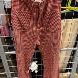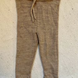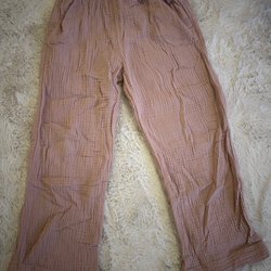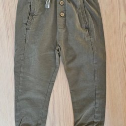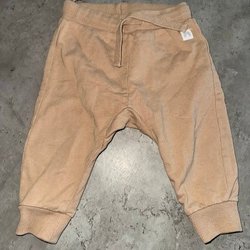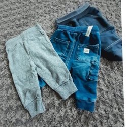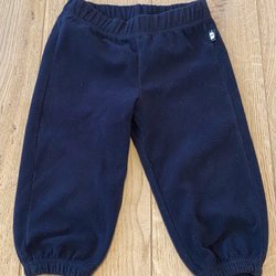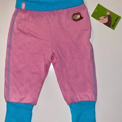 Deux paires de pantalons de bébé en bleu. Un Peanut avec des détails rouges et un de Pippi taille 68