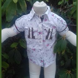 Name it skjort blus med blommor, krage och kort ärm s 86 2-åringen utmärkt skick
