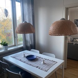 - Träbaserade taklampor som ger ett varmt och naturligt intryck