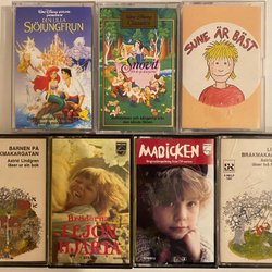 I en tid då teknologin ständigt rusar framåt, är det något speciellt med att stanna upp och blicka tillbaka. Många av oss minns den oslagbara känslan av att sätta in en kassett i spelaren, trycka på play och föras till en annan värld. Kassettband för barn har varit porten till en magisk värld av sagor, äventyr och musik. De representerar en enklare tid då berättelser och sånger kom till liv i våra fantasier, snarare än på en skärm framför oss. Här på Tradera finns en skattkista fylld med underbara minnen och upptäckter. Här kan man finna allt ifrån de mest älskade sagorna som trollbundit generationer, till musikklassiker som fått små fötter att trippa i takt. Exempel på vad som kan dyka upp är: