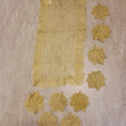 Nappe en dentelle/chemin de table et 10 sets de table, en fil de cordon, Vintage, Pologne, artisanat