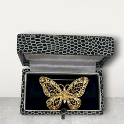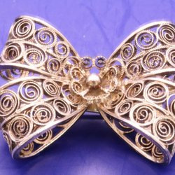 Broscher förknippas ofta med ädelstenar, guld och silver. Trenderna genom årtiondena har dock även lämnat plats för retrobroscher och färgglada plastvarianter. Broscher finns i ett närmast oändligt antal olika varianter, både trendiga och klassiska. I Traderas utbud av begagnade broscher kan man hitta broscher silver och broscher guld. I allra bästa fall finns en Chanel brosch eller två ute för auktion – en dröm för den som gillar att klä sig klassiskt stilrent. Den som vågar ta ut svängarna har ofta ännu mer att hämta. Broscher, smycken och kläder är ett intresse som delas av många. Individuella preferenser styr garderobens innehåll och dessa förändras över tid. Titta igenom utbudet av aktiva annonser så kan du upptäcka broscher som gjort sitt i en persons smyckesgarderob, men som blir huvudnumret i din. Hos Tradera har du möjlighet att hitta begagnade broscher i alla prisklasser, från slutsålda varianter från budgetkedjorna till diamantprydda varianter från välkända juvelerare.