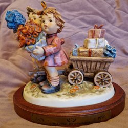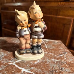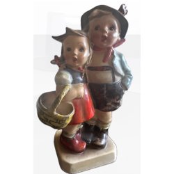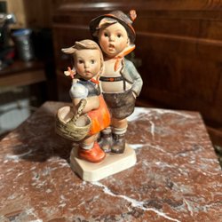 Hummel-keramik och porslin är resultatet av det passionerade arbetet av Berta Hummel, en tysk nunna och konstnär som började skapa dessa ikoniska figurer under 1930-talet. Berta Hummels detaljrika och livfulla skapelser snabbt blev populära, och snart blev de synonymt med fin tysk hantverkskvalitet. Varje pjäs berättar en historia, ofta med barn i pittoreska och roliga situationer, som ger en känsla av nostalgi och värme.