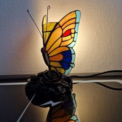 Lys upp ditt hem med den charmiga och eleganta Butterfly Tiffany Stained Glass Bordslampa. Denna fantastiska lampa är ett mästerverk av handgjort färgat glas, inspirerad av klassiska Tiffany-lampor, vilket skapar en varm och mysig atmosfär. Med sin unika fjärilsdesign och hållbara retrobas blir den en perfekt detalj i alla rum, från vardagsrum och sovrum till kontor och bibliotek.