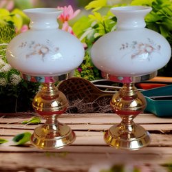 2 st vackra bordslampor med guldförgyld stomme med lampskärmar.