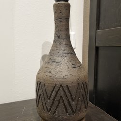 En keramik bordslampa med ett unikt mönster. Lampan är 37 cm hög.