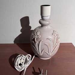 En vacker bordslampa med ett elegant blommönster. Lampan har en klassisk design som passar i de flesta rum. Perfekt för att skapa en mysig och inbjudande atmosfär.